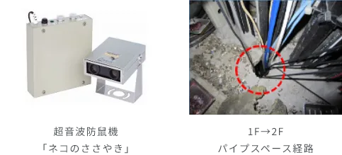 ・正面シャッターへの「ネコのささやき」(超音波防鼠機)を設置